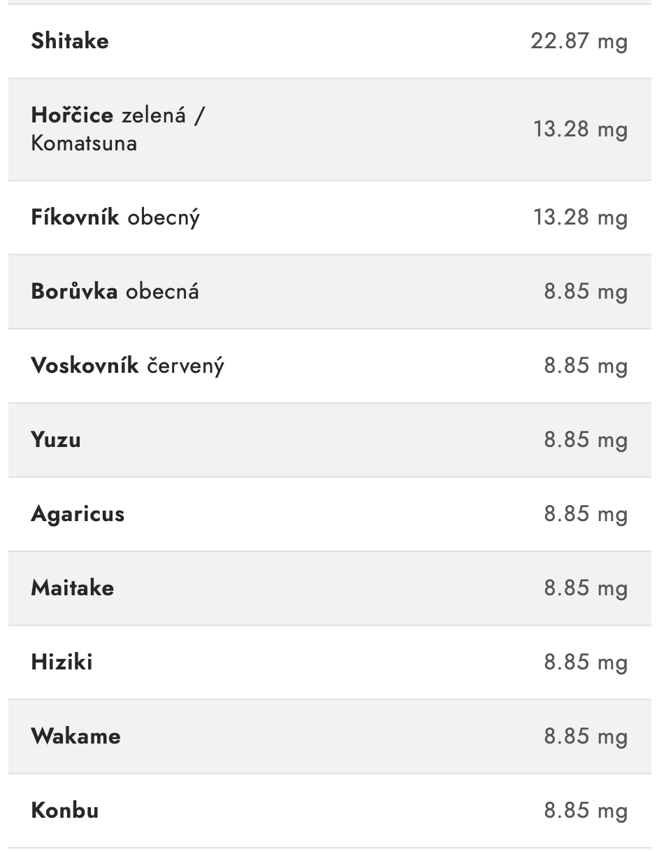 Speciální fermentační proces po dobu 5 let zajišťuje bohatý obsah aktivních postbiotických látek, které jsou důležité pro celkovou kondici. Mezi nimi jsou např. také aminokyseliny, peptidy, organické kyseliny a polyfenoly, které podporují trávení a rozmanitost mikrobiomu.