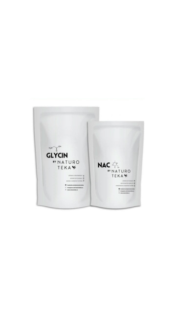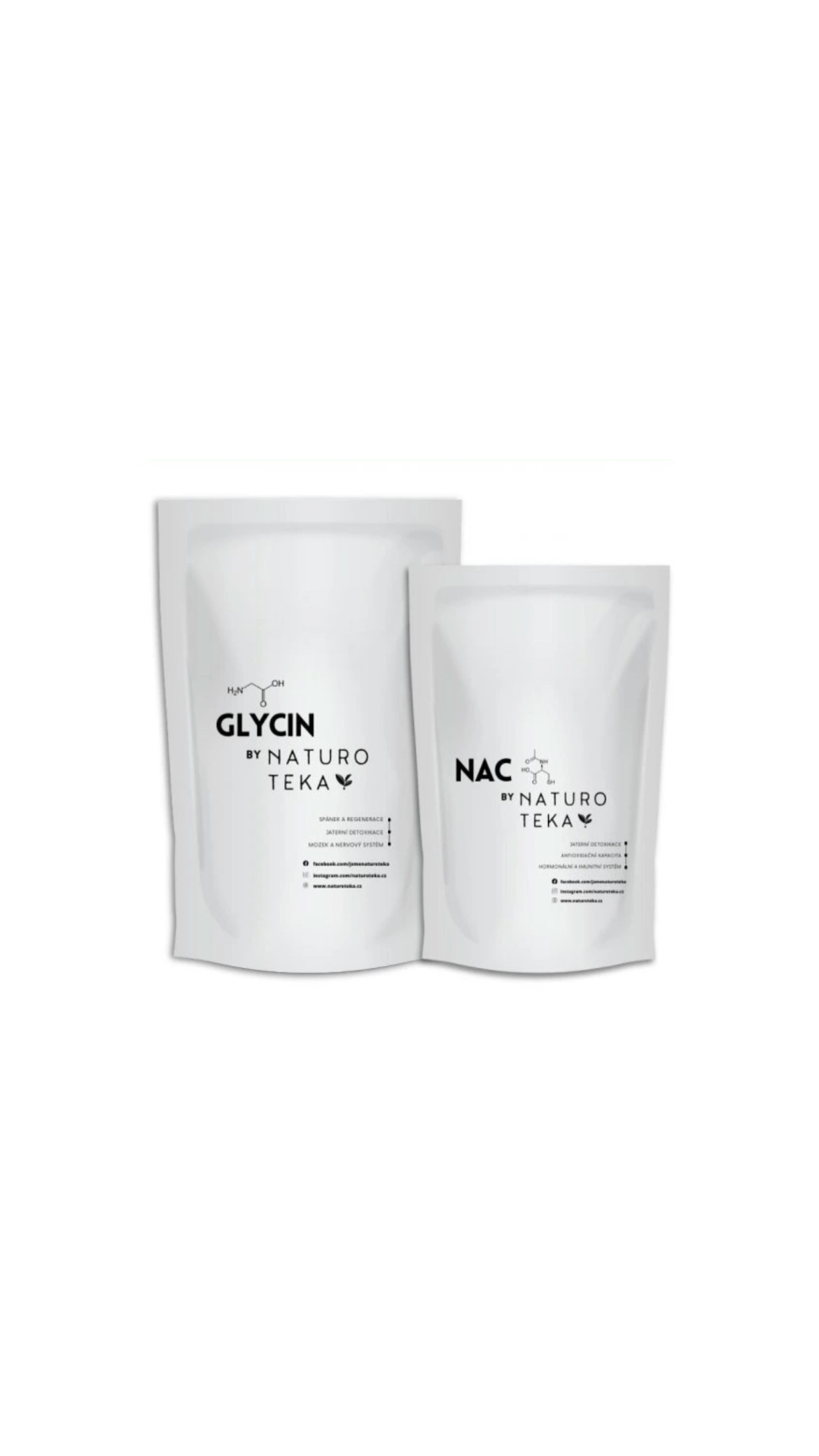 Glycin je aminokyselina a zapojuje se v těle do opravdu mnoha důležitých biochemických procesů. Naturopaté vnímají Glycin především jako prekurzor uklidňujícího (inhibičního) neurotransmiteru Gaba. Gaba pomáhá, mimo jiné, zlepšit kvalitu a architekturu spánku a usínání. Glycin vyrovnává hodnoty methioninu a tím nadměrné hodnoty nežádoucího homocysteinu. Glycin je také součástí takzvaného hemu a tedy důležitý pro tvorbu hemoglobinu a transport kyslíku. Glycin navíc tvoří 30% kolagenu a je důležitý pro tvorbu kreatinu a tedy pomáhá při růstu svalové hmoty a síly. A Glycin je také součástí genetického kódu a je nezbytný pro proteosyntézu - tvorbu proteinů a správné buněčné dělení. Spolu s NAC je pro nás důležitou stavební cihličkou pro tvorbu nejsilnějšího antioxidantu Glutathionu, který nutně potřebujeme pro druhou fázi jaterní biotransformace neboli detoxikace a je také silně protizánětlivý. Glycin je spolu s Taurinem důležitý pro tvorbu žluči, a proto nezbytný pro trávení tuků.